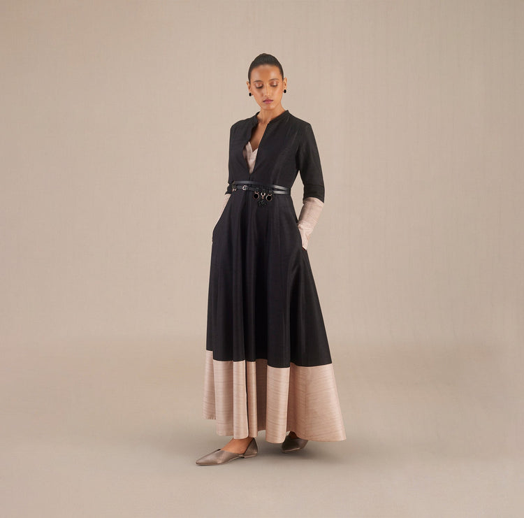 Experience the perfect blend of comfort and elegance with our exquisite jacket set. The cascading silhouette and a belt with playful charms add an old world charm. Take her out for fun cocktail evenings. Comes with inner, pants and belt.