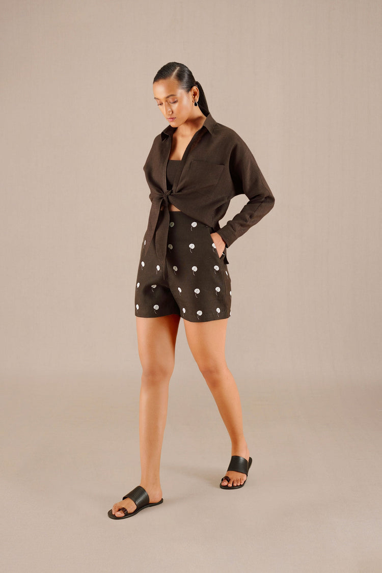 • Izara Knotted Shirt Set - Dark Brown